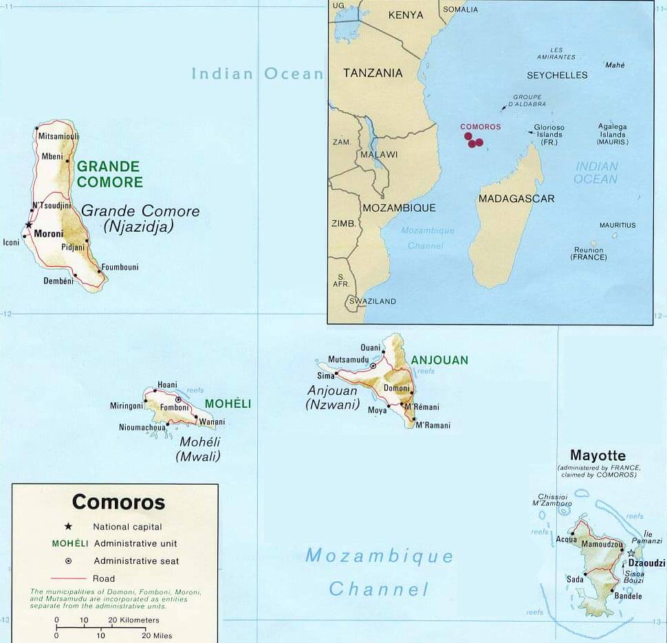 Mit der interaktiven Mbeni Karte können Sie regionale Autobahnkarten, Straßensituationen, Transportmöglichkeiten, Unterkunftsführer, geografische Karten, physische Karten und weitere Informationen anzeigen. Auf der Mbeni Karte können Sie alle Bundesstaaten, Regionen, Städte, Gemeinden, Bezirke, Alleen, Straßen und Satelliten-, Skizzen- und Geländekarten von beliebten Zentren anzeigen.